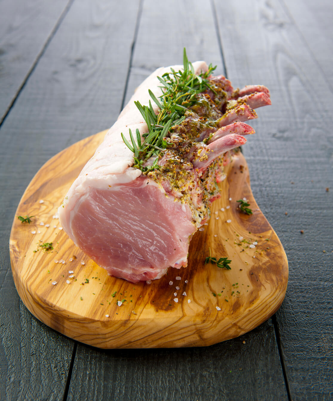 - Lamsbout al dan niet opgevuld met verse kruiden en gemarineerd met zwarte peper en zeezout